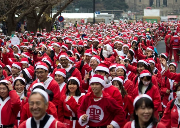 Người dân Nhật Bản mặc trang phục ông già Noel tham gia giải chạy Tokyo Great Santa 2018. Sự kiện thu hút được hơn 5.000 người, một phần số tiền thu được sẽ dùng để mua quà Giáng sinh cho các trẻ em nằm viện. Ảnh: Getty