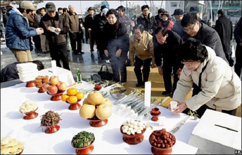 Buổi tối trước thời khắc giao thừa, người Hàn Quốc thường tắm bằng nước nóng để tẩy trần. Sau đó, họ sẽ mặc trang phục truyền thống hanbok hoặc những bộ quần áo đẹp nhất để cử hành nghi lễ thờ cúng tổ tiên.