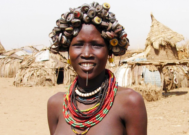 Thêm một bộ lạc nữa đến từ Ethiopia trong danh sách. Phụ nữ Mursi có xu hướng xỏ khuyên môi dưới, càng xỏ nhiều thì càng chứng tỏ sức hấp dẫn. Thay vì đội vương miện, họ sẽ đội trên đầu một cặp sừng cùng với những nét vẽ trên mặt. Ban đầu, phong tục kì lạ này sinh ra để ngăn chặn nạn lạm dụng nô lệ nữ. Lâu dần, nó đã trở thành một biểu tượng vẻ đẹp không thể thiếu của phụ nữ Mursi.