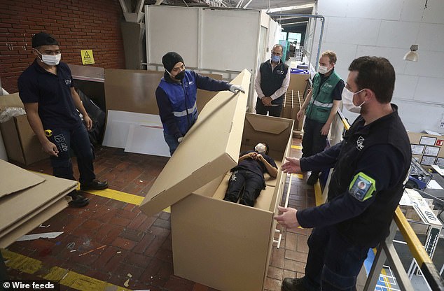 Công ty ABC Display ở Colombia đã chế tạo những chiếc giường bằng bìa các-tông cứng với thành giường bằng kim loại và các nhà thiết kế tin rằng nó có thể gấp đôi lại thành quan tài nếu bệnh nhân qua đời.