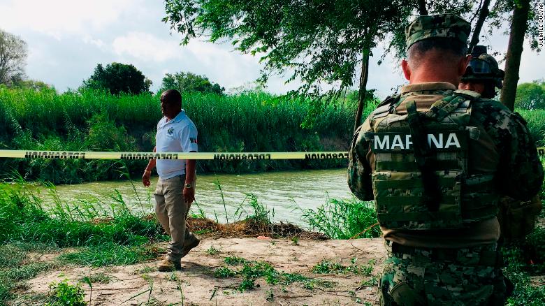 Chính quyền Mexico đi dọc theo bờ sông Rio Grande, nơi tìm thấy thi thể của hai cha con.