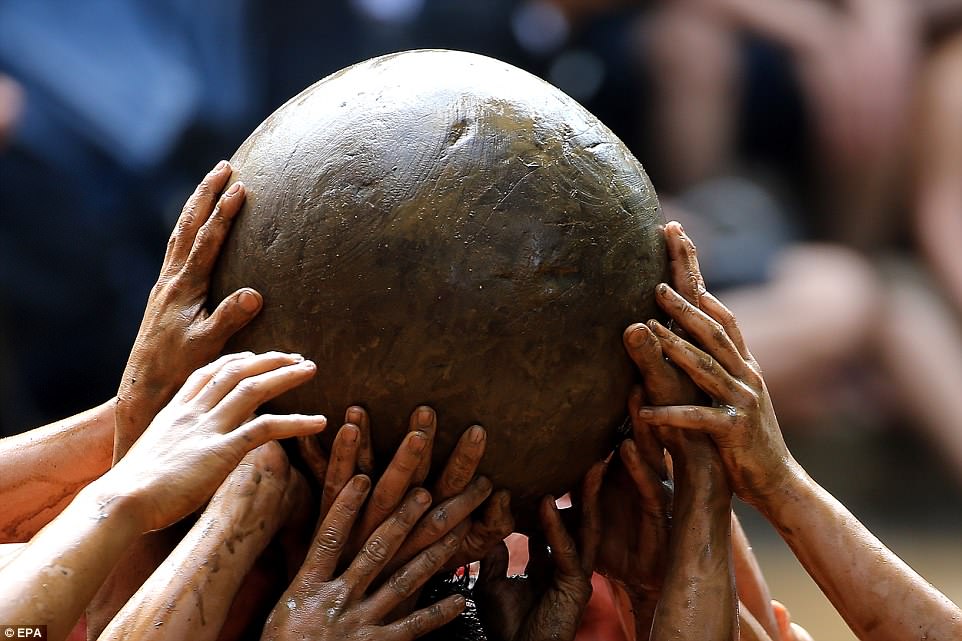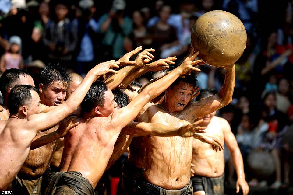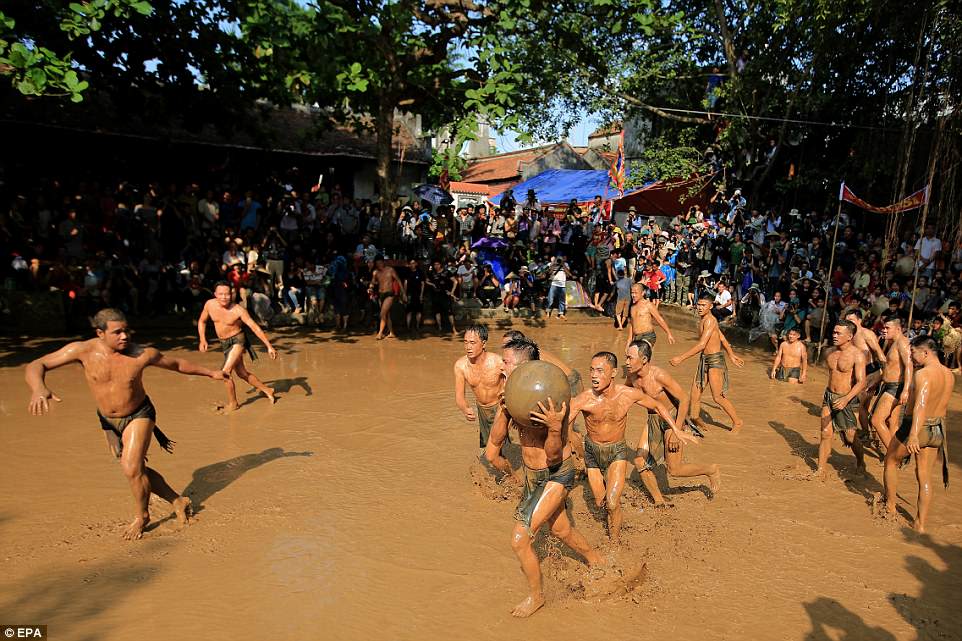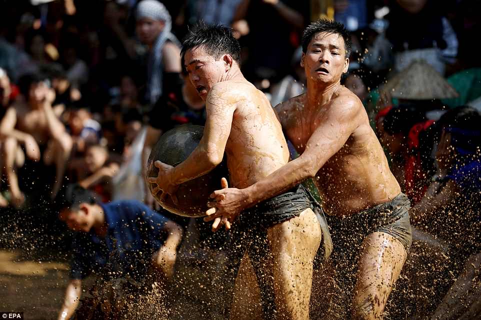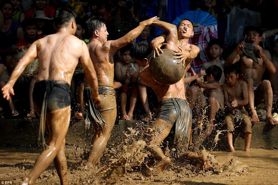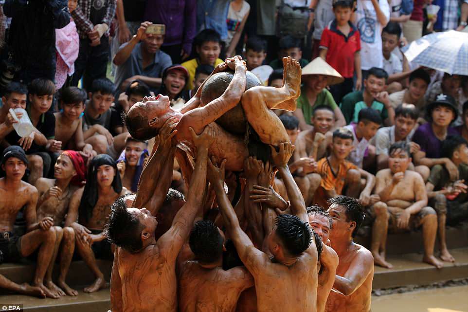 Những hình ảnh đáng chú ý này được chụp tại lễ hội vật cầu bùn làng Vân, tỉnh Bắc Giang hôm 26/5, Daily Mail đưa tin. Lễ hội vật cầu còn được gọi là hội Khánh Hạ.