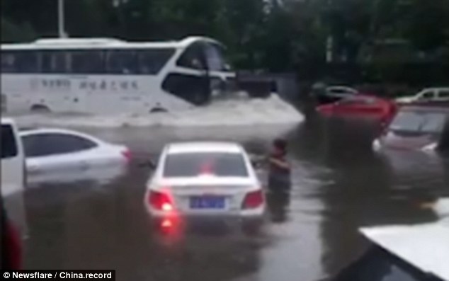 Video: Mưa lũ nhấn chìm xe ô tô ở Trung Quốc