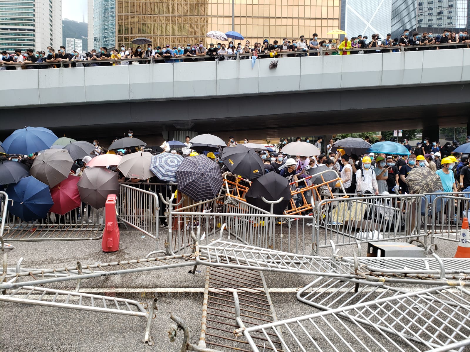 Hàng ngàn người biểu tình từ sáng sớm nay phong tỏa đường Lung Wo, con đường huyết mạch ở phía đông tây, gần văn phòng của trưởng đặc khu Lâm Trịnh Nguyệt Nga và trụ sở cơ quan lập pháp Hong Kong. Một số người đeo mặt nạ và đội mũ bảo hiểm, chặn các con đường chính dẫn vào các tòa nhà công quyền. Cảnh sát chống bạo động dùng bình xịt hơi cay vào người biểu tình để giải tán đám đông và nói nếu người dân quá khích, họ buộc phải sử dụng bạo lực.