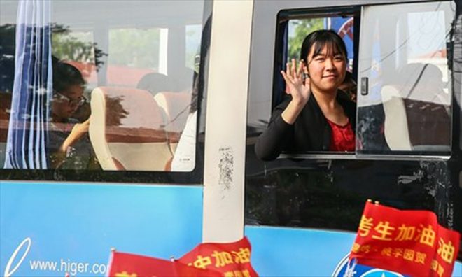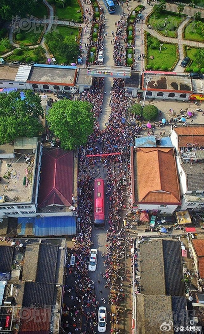 Trước khi kỳ thi diễn ra ít lâu, hàng chục ngàn bậc phụ huynh đã đích thân tới tận trường luyện thi để tiễn con em mình lên đường vào thành phố giành tấm vé vào Đại học.