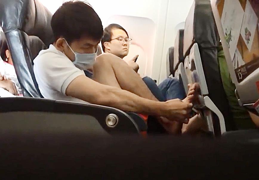 Người đàn ông trẻ này đã bị bắt gặp cắt da chết từ chân của mình trên một chuyến bay đến Hà Nội.