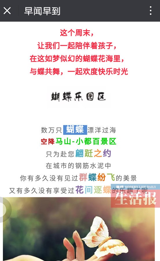 Cuối tuần vừa rồi, một vườn thú ở Quảng Tây, Trung Quốc, đăng quảng cáo về cuộc triển lãm “Khủng long và bướm”, hứa hẹn sẽ cho du khách chứng kiến hàng ngàn con bướm bay lượn, thậm chí còn có thể cho bướm đậu lên tay.