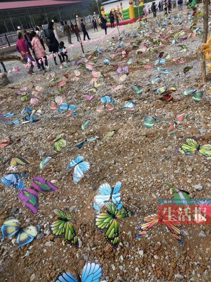 Cứ ngỡ rằng được xem khung cảnh hàng ngàn con bướm bay lượn, nào ngờ các du khách chỉ thấy những con bươm bướm bằng nhựa.
