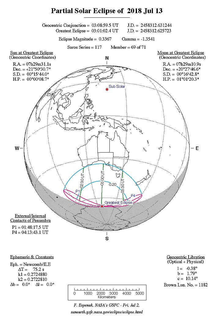 Tuy nhiên, chỉ có ở đại dương mới quan sát được phần này. Ở đất liền, hiện tượng hiếm này sẽ bắt đầu ở Nam Úc vào khoảng 1h chiều (giờ địa phương), quét theo hướng Đông khoảng 40 phút cho đến khi kết thúc.