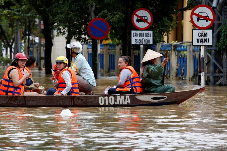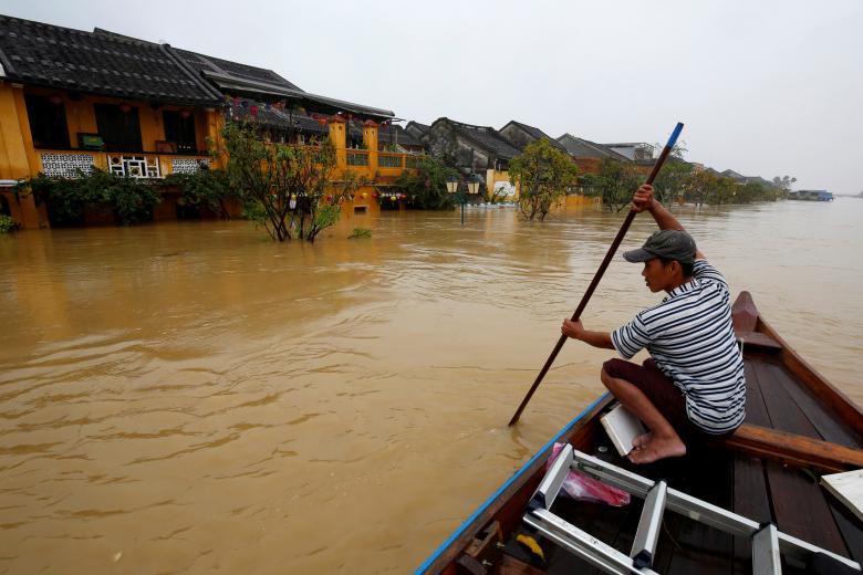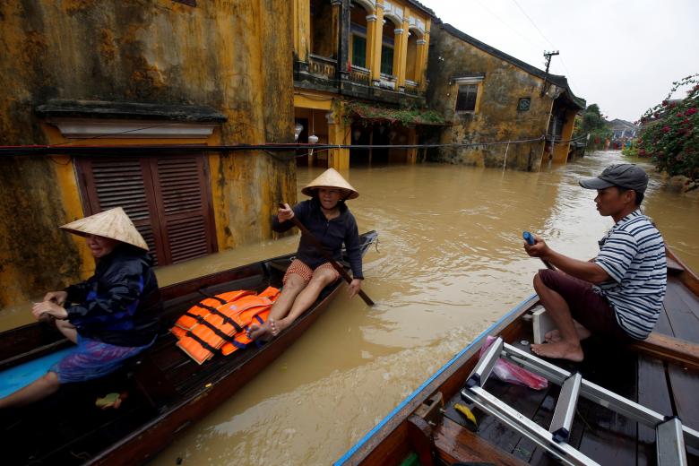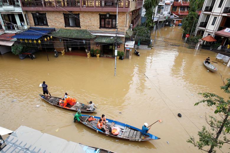 Lũ vượt mức báo động, khiến mọi hoạt động đều tê liệt. Hơn 50% diện tích Hội An chìm trong biển nước. Người dân phải dùng thuyền để di chuyển giữa thành phố.