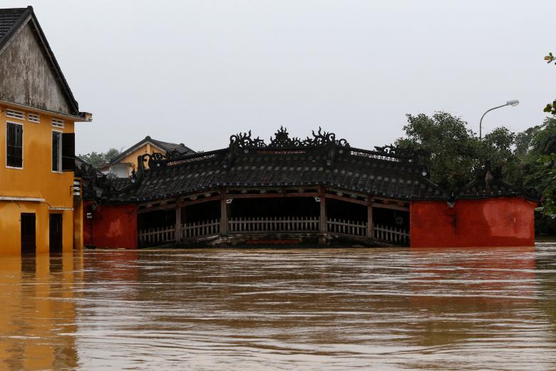Nước tràn qua cầu Chùa, biểu tượng của phố cổ Hội An.
