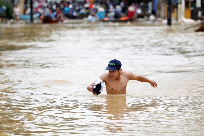 Nước lũ dâng cao đến ngang người trưởng thành.