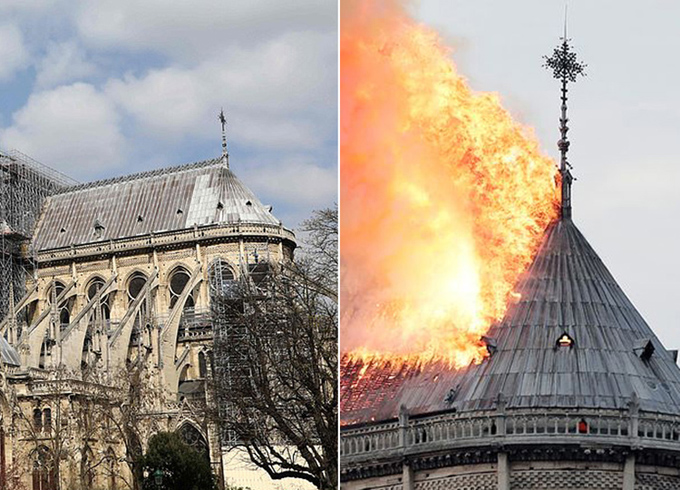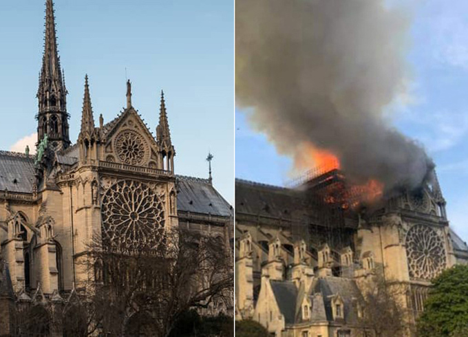 Tối 15/4, nhà thờ Đức Bà Paris, công trình tôn giáo lịch sử nổi tiếng của Pháp và châu Âu, bị phá hủy một phần do hỏa hoạn. Khoảng 400 lính cứu hỏa đã được huy động để dập lửa.