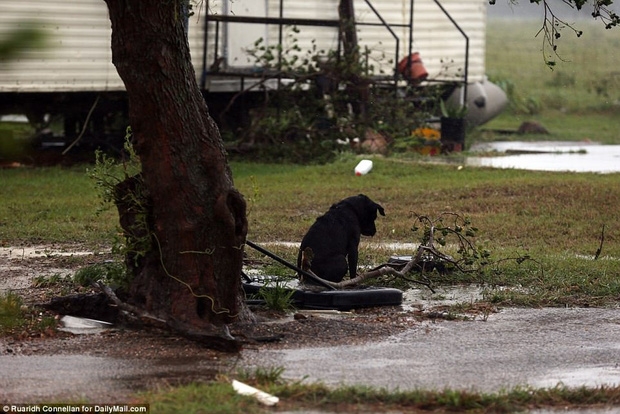 Một nhiếp ảnh gia của tờ Daily Mail đã chụp được bức hình chú chó nhỏ bị buộc vào cột điện tại Victoria, Texas khi trời đang mưa gió bão bùng. Chú chó nhỏ chỉ biết đứng lạnh lẽo trong cơn mưa, run rẩy và nhìn nước dâng lên. Ngay sau đó, nhiếp ảnh gia đã cởi xích cho chú và đưa đến vùng an toàn.