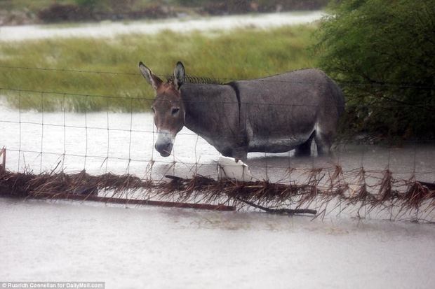 Và một chú lừa bị mắc kẹt trong mênh mông nước không đi được.