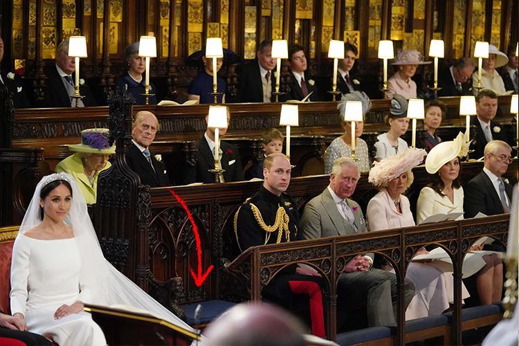 Chiếc ghế trống bên cạnh Hoàng tử William, phù rể của em trai Harry, là đặc biệt nhất. Dù theo truyền thống, vị trí trước mặt nữ hoàng luôn được bỏ trống, nhiều người cho rằng, ghế ngồi dự bị đó là dành cho Diana Công nương xứ Wales chứ không phải vì bất kỳ lý do nào khác. Đây được cho là cách Harry thể hiện sự tôn trọng với mẹ.