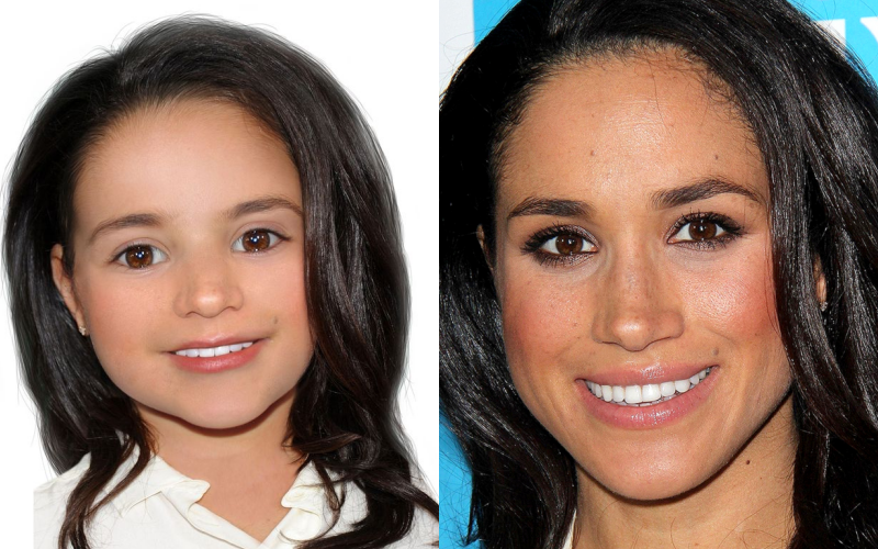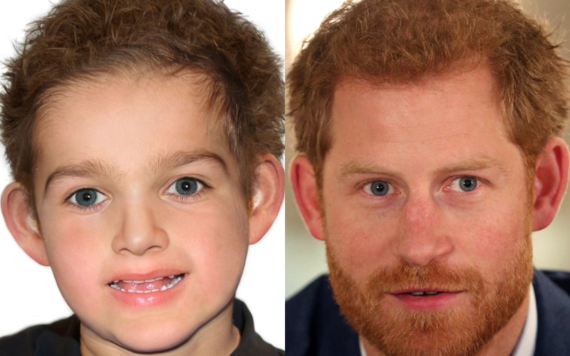 Theo đó, con trai Hoàng tử Harry được dự đoán sẽ sở hữu mái tóc xù đặc trưng của cha, đôi mắt xanh và cặp má hồng đáng yêu. Những nét này tương đối giống hình ảnh Harry hồi bé. Trong khi đó, con gái được phác hoạ với hình ảnh mái tóc nâu đen dài, đôi mắt to đen và đường nét ngọt ngào như mẹ.