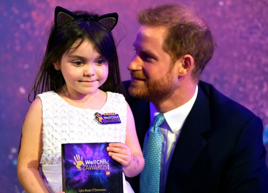 Hoàng tử Harry và chủ nhân của giải thưởng WeChild năm nay, bé Lyla-Rose O’Donovan.
