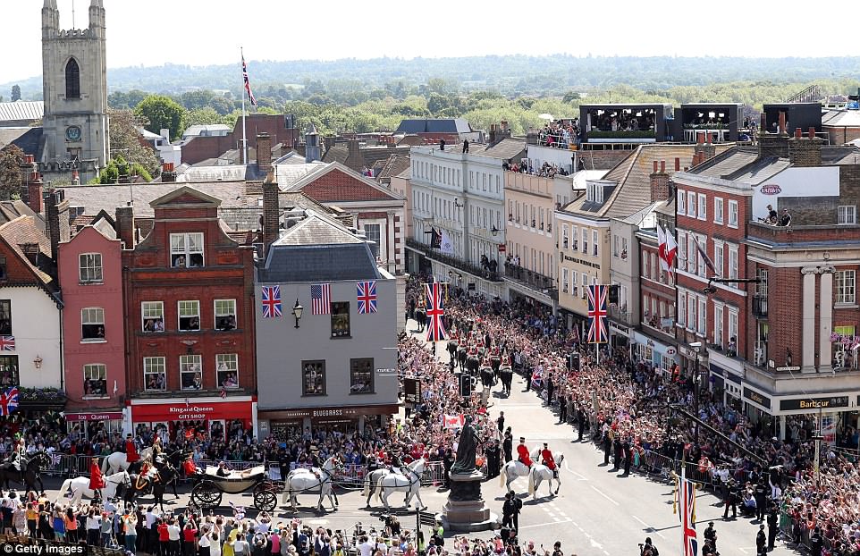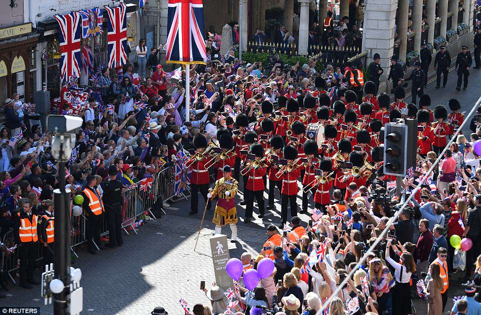 Trước khi lễ cưới chính thức diễn ra ở nhà nguyện St George trong lâu đài Windsor, rất đông người dân Anh tập trung dọc con đường dẫn tới lâu đài Windsor.