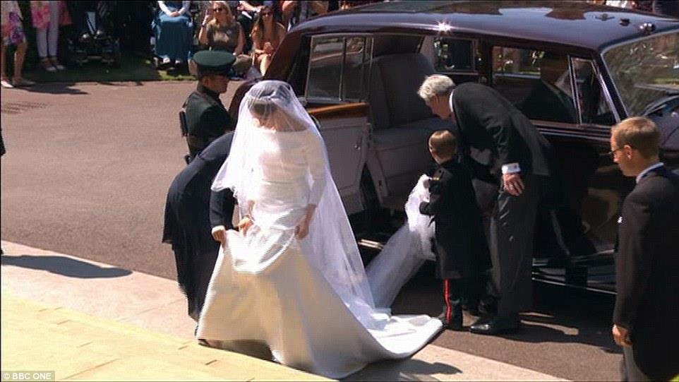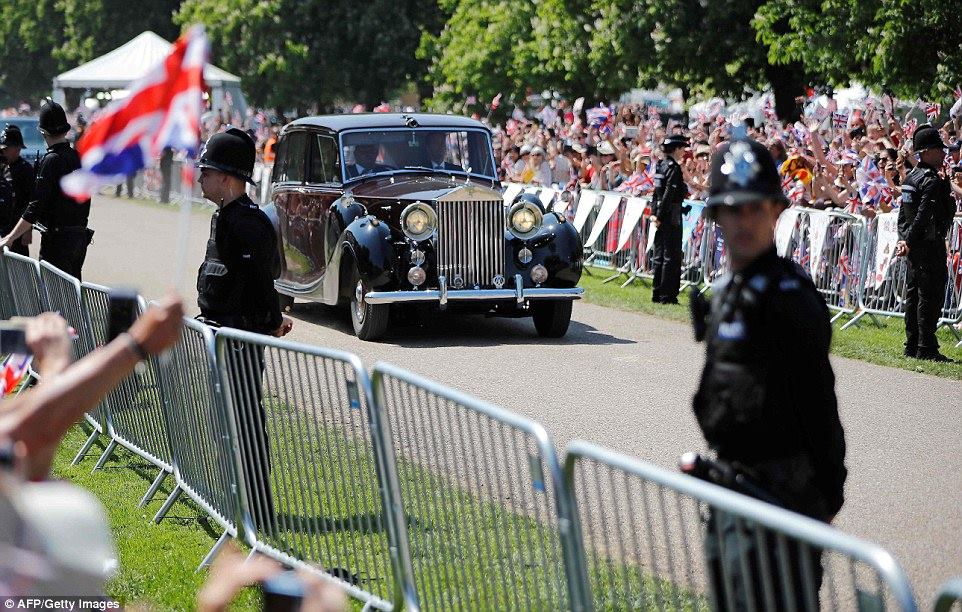 Nữ diễn viên Mỹ vừa rời khách sạn Cliveden cách đây ít phút cùng mẹ là bà Doria Ragland để di chuyển đến lễ đường ở lâu đài Windsor trên một chiếc Rolls Royce Phantom. Cô mặc chiếc váy cưới màu trắng và voan trùm đầu, vẫy tay chào đám đông bên ngoài đang reo hò.