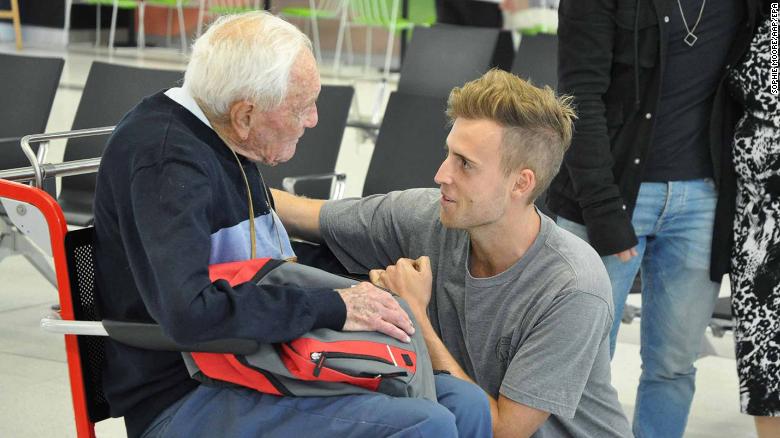 Ông Goodall chia tay cháu trai hôm 2/5. Ảnh: CNN