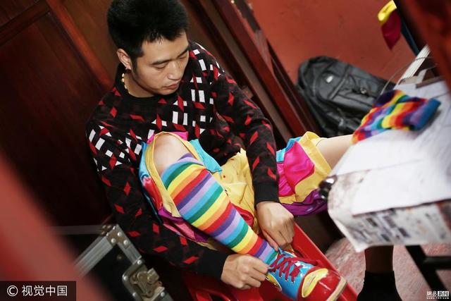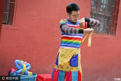 Anh hóa thân thành chú hề để biểu diễn mang lại tiếng cười cho mọi người.