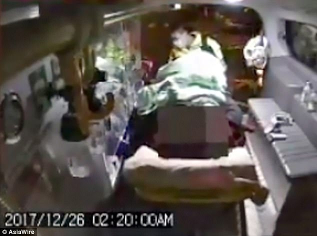Các nhân viên y tế có mặt giữa đêm khuya để đưa ông Wang đi cấp cứu.