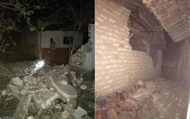 Trận động đất xảy ra vào sáng sớm nay khi mọi người còn đang ngủ, khiến nhiều ngôi nhà hư hại. Ảnh: BNBP