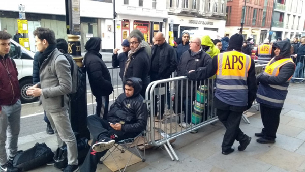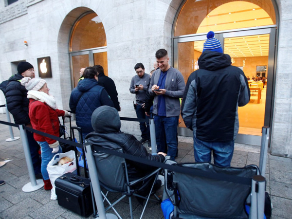 Thậm chí ở thành phố Cologne, Đức, người đàn ông này còn mang túi ngủ tới ngủ qua đêm trước cửa hàng Apple.