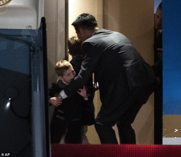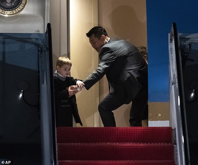 Trước khi kịp trốn thoát khỏi Air Force One, Theodore đã bị nhân viên Sở Mật vụ ngăn cản. Cậu bé cười toe toét với ống kính phóng viên, trong khi anh trai Joseph 6 tuổi đứng ngay sau lưng. “Tan chảy” trước sự đáng yêu của con trai, Ivanka đã đăng tấm ảnh này lần nữa lên story Instagram, vẫn với dòng chú thích đó.