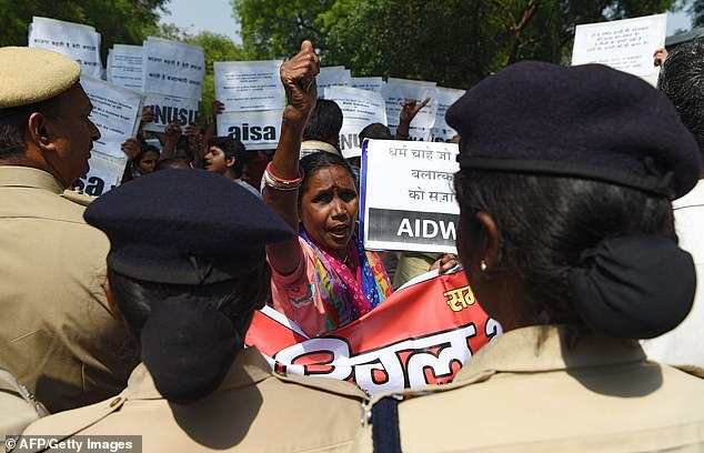 Người dân biểu tình ở Uttar Pradesh để đòi lại công bằng cho bé gái bị cưỡng hiếp vào tháng 4/2018.