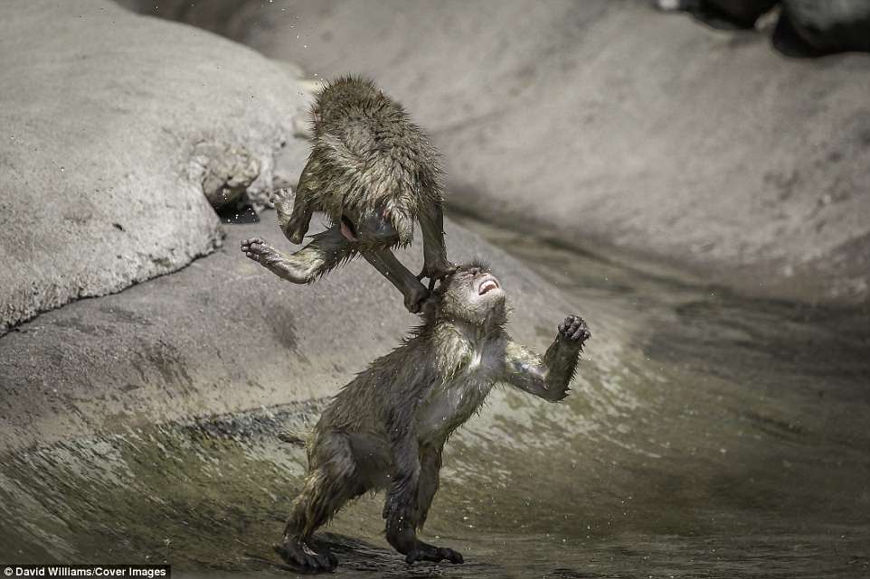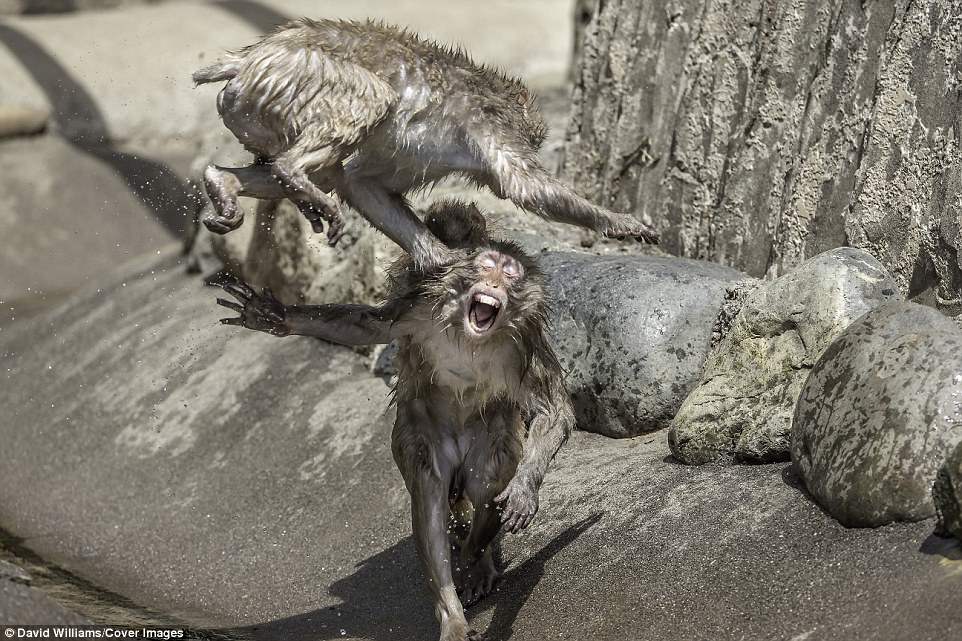 Khoảnh khắc vui nhộn hiếm có này được nhiếp ảnh gia người Anh David Williams chụp tại sở thú Tama ở Tokyo, Nhật Bản.