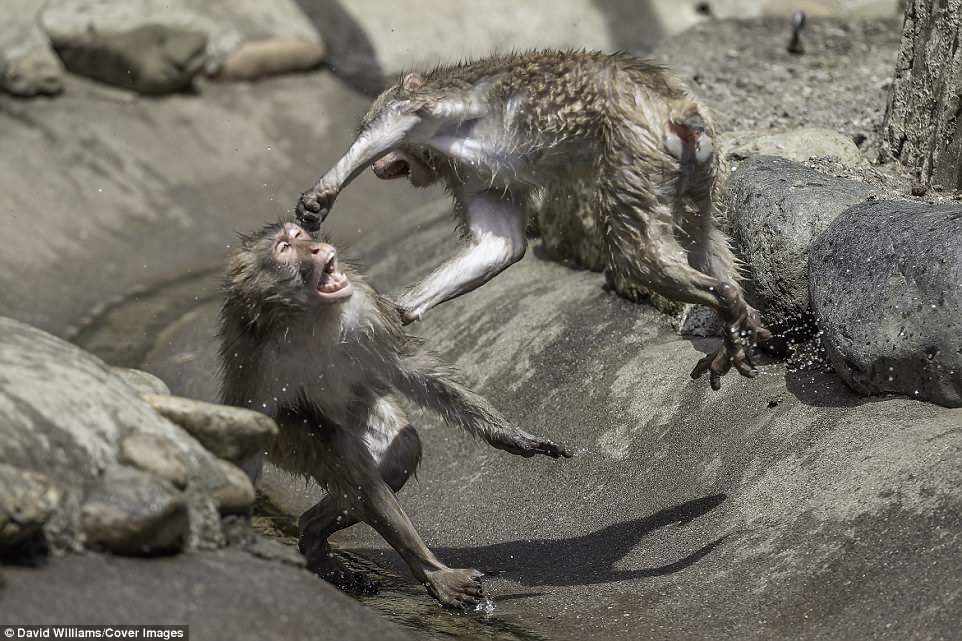 “Bức ảnh này cho thấy khoảnh khắc hoàn hảo của một con khỉ vừa nhảy lên vừa tung cú đấm cùng một lúc. Tôi thậm chí không nhìn thấy điều này vì mọi việc diễn ra quá nhanh. Tôi đã rất ngạc nhiên khi về nhà xem lại ảnh“, nhiếp ảnh gia David nói.