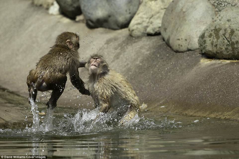 Tại đây, những con khỉ trẻ có thể thoải mái tung đòn về đối thủ trong khi đó, những con khỉ già lại chọn cách nằm thư giãn dưới hồ nước mát lạnh.