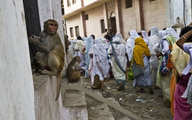 Ngôi đền Bankey Bihari ở vùng Vridavan, thuộc quận Mathura bang Uttar Pradesh (Ấn Độ) tràn ngập những con voọc hoang - những con khỉ kích thước trung bình, có đuôi dài và sinh sống ở Châu Á, thường được gọi là khỉ lá. Chúng thường xuyên tấn công khách du lịch đến ngôi đền này, đôi khi là để tìm đồ ăn, đôi lúc chỉ là đến dọa nạt.