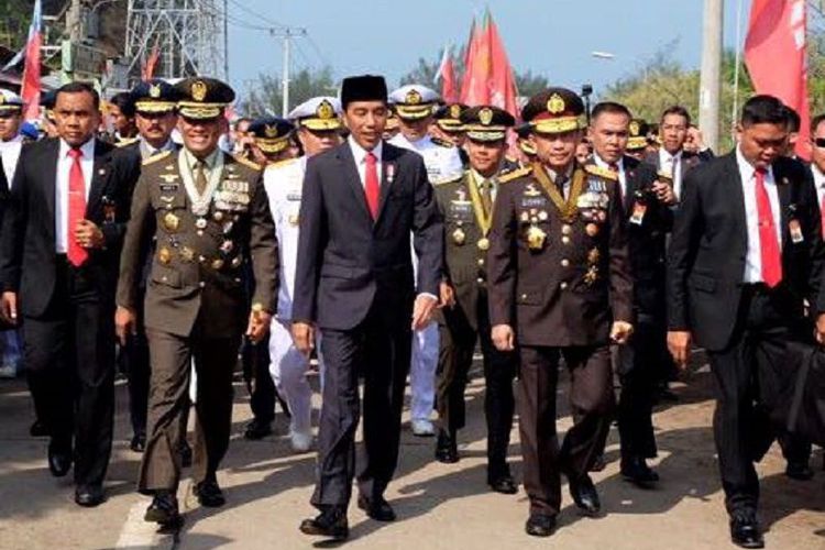 Tháp tùng Tổng thống còn có Cảnh sát trưởng Quốc gia Tito Karnavian và Bộ trưởng Quốc phòng Ryamizard Ryacudu.
