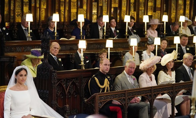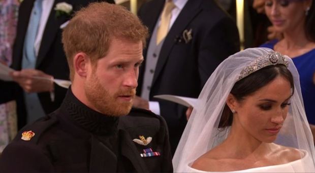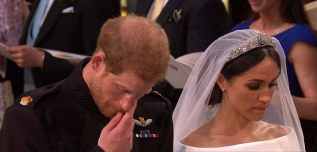 Trong suốt bài thánh ca, Hoàng tử Harry nắm chặt tay Meghan, ngẩng mặt lên trần như để ngăn nước mắt chảy ra.