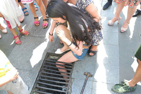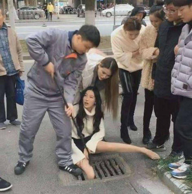 Do mải mê với chiếc điện thoại trên tay, không chú ý đường đi, một cô gái Trung Quốc khoảng 20 tuổi đã bước hụt chân vào ống cống thoát nước. Phần đùi của cô bị kẹt cứng giữa các thanh kim loại.