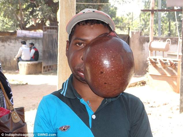 Suốt 10 năm qua, Amar Samad ở Konaroa, thành phố Simdega, bang Jharkhand sống khép mình, không dám gặp gỡ hay giao tiếp với người mọi xung quanh vì mắc phải bệnh di truyền hiếm gặp từ năm 2008. Khối u ban đầu mọc ở hàm trên của Amar và sau đó phát triển nhanh thành dị vật có khối lượng 4,8 kg và đường kính lên tới 20 cm. Khối u dần phình ra khỏi mặt chàng trai 19 và che khuất nửa mặt trái. Khối u to tới mức một mắt của Amar không còn nằm đúng vị trí.