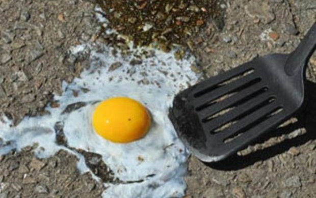 Tại Ealing, Tây London vào ngày 30/6, nhiệt độ cao 32 độ C khiến trứng cũng bị chiên chín ngay trên lòng đường. Anh chàng Mark Kehoe chế biến “bữa sáng” là món trứng ốp la ngay trên mặt đường trong những ngày nắng nóng ở Anh.