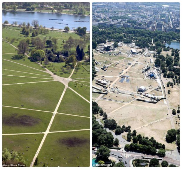 Không chỉ vậy, ảnh chụp từ trên cao cho thấy những bãi cỏ cháy sém tại các vùng nông thôn như South Woodham Ferrers ở Chelmsford, hạt Essex, cũng khiến nhiều người kinh hãi về nhiệt độ ở Anh trong những ngày qua.