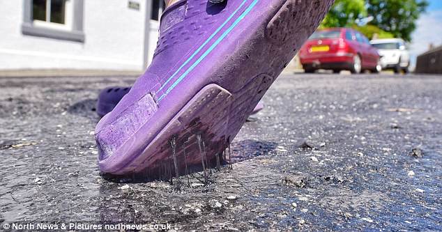 Nắng nóng khiến nhựa đường tại làng Tirril, Cumbria, Anh bị tan chảy.