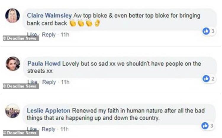 “Newcastle quả là nơi tuyệt vời nhất trên Trái đất”; ” Tôi đã có thêm niềm tin vào cuộc sống sau khi có quá nhiều tồi tệ đang diễn ra xung quanh chúng ta”; “Thật tuyệt vời làm sao”,… vô số nhiều người dùng Facebook đã để lại các bình luận khen ngợi hành động của người đàn ông vô gia cư dưới bài video đang gây bão trên.