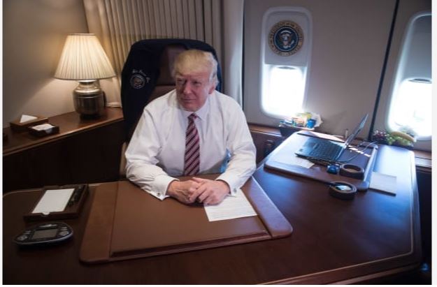 Ông Trump trong văn phòng trên chiếc Air Force One tại Căn cứ sau khi kết thúc chuyến công tác tại Philadelphia vào tháng 1/2017. Ảnh: Getty Images.
