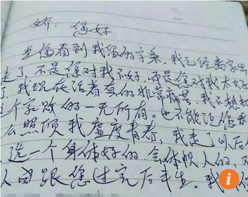 Bức tâm thư ông Xia để lại cho vợ con trước lúc ra đi.