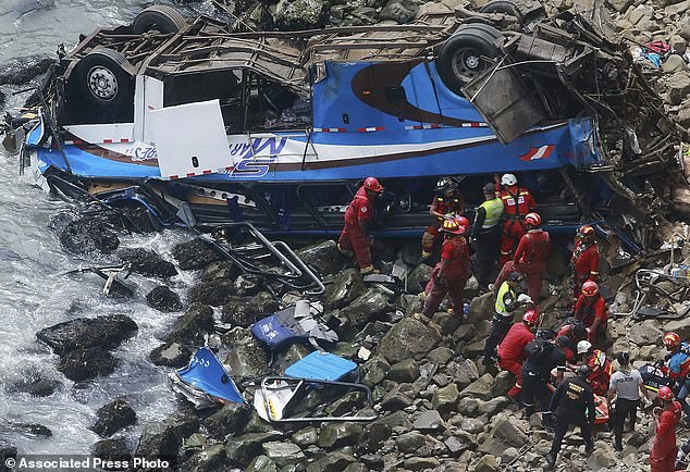 Vụ việc xảy ra tại khu vực Pasamayo, cách thủ đô Lima, Peru khoảng 70 km về phía Bắc vào chiều ngày 2/1. Lúc đó, chiếc xe buýt màu xanh chở 57 hành khách đã va chạm với một xe tải rồi lao thẳng xuống vực tại địa điểm mà người dân địa phương hay gọi là “khúc cua tử thần”.