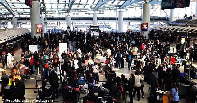 6000 chuyến bay bị hủy bỏ khiến cho hành khách bị kẹt lại sân bay JFK “đông như cá mòi đóng hộp” - theo lời một du khách Trung Quốc có tài khoản Instagram là zhxiang20.