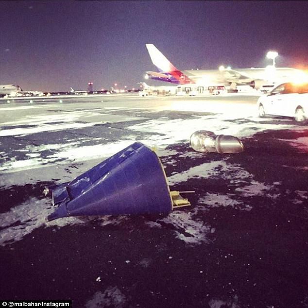 Hình ảnh trên chụp lại các mảnh vỡ từ vụ tai nạn khiến hành khách buộc phải ở lại sân bay JFK sau khi chuyến bay qua đêm của họ bị hủy bỏ.