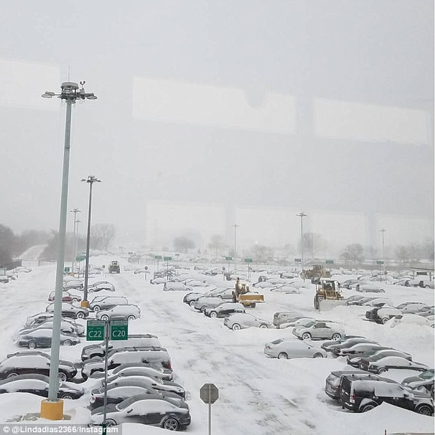 Bãi đỗ xe của sân bay ngập trong tuyết.
