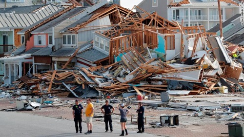 Những cảnh tượng tàn khốc xuất hiện khắp nơi sau bão, nhưng không khu vực nào chịu thiệt hại nặng hơn Mexico Beach, nơi gần như bị xóa sổ. Nước lũ đang rút làm lộ ra mức độ thiệt hại. Thành phố biển tuyệt đẹp đã trở thành một đống hỗn độn như ngày tận thế, phần lớn các ngôi nhà đều bị phá hủy.